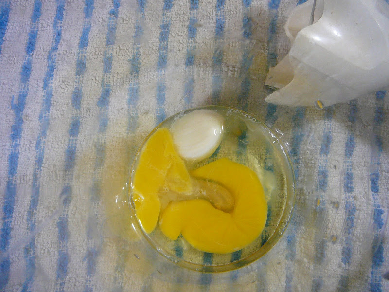 Colocar por último el aceite más o menos 100 cm3 (lleva más cantidad más o menos 200-250 cm3, dependiendo del tamaño del huevo).