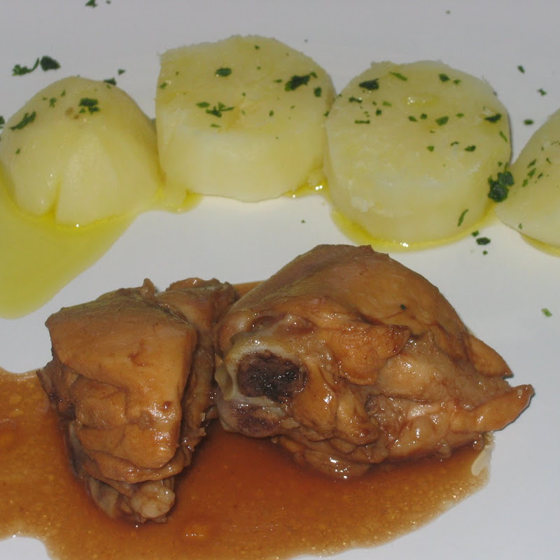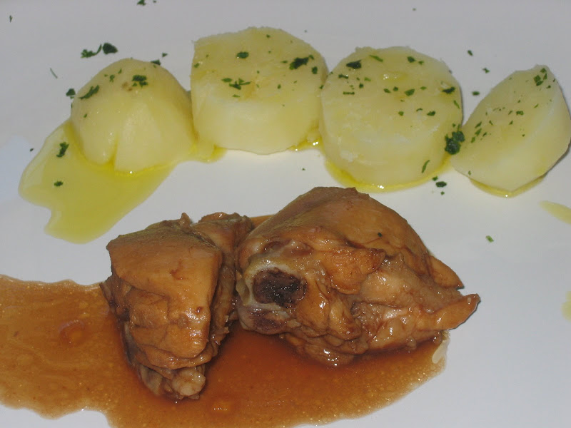 y sirvo, hoy acompañe con patatas al natural con oliva y perejil picado.