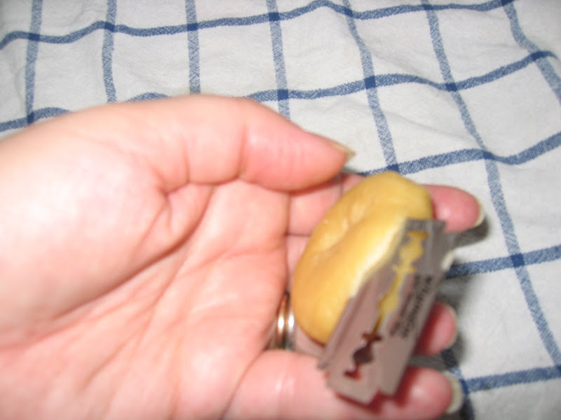 una vez que vemos que se enfriaron y no estan pegajosas, con un cortante gillette o cuter, le hago un corte por encima a 45º, alrededor de la rosca