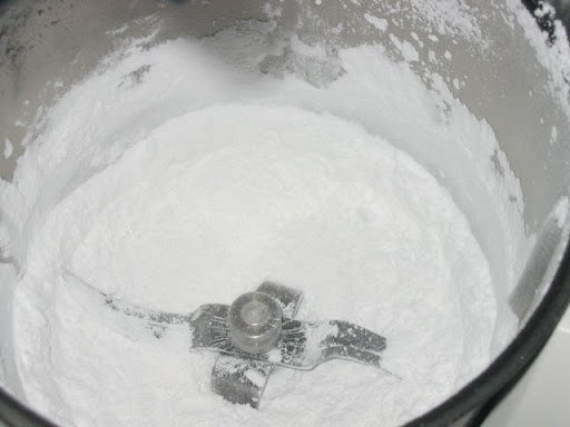 Como lleva 250 gr de azucar impalpable y no tenia, entonces la hice colocando el azucar en la procesadora
