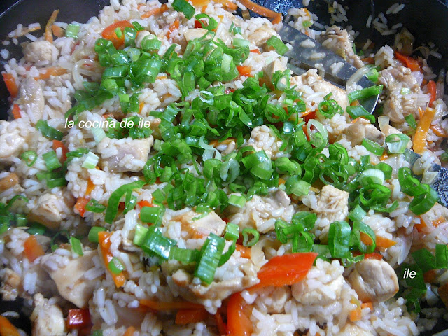 Salteado de arroz con pollo y vegetales