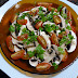 Vuelco el aderezo sobre los champiñones y trato de que se empapen bien, los mezclé y después volví a acomodar los champiñones en el plato hondo.