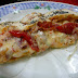 Como hice en la anterior, rehogue cebolla, morrón o pimiento rojo y unos dientes de ajo en un poco de aceite y cuando estuvo tierna la verdura y la dejé enfriar y la coloqué escurrida sobre el queso, cubrí esta verdura con una capa de queso.