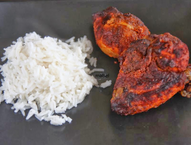 Lo acompañé con un arroz que le vi hacer a Jamie Oliver, con leche de coco, es tan rico y tan rapido de hacer, que parece mentira, y combina a la perfección con el picor del pollo, es un bálsamo!!