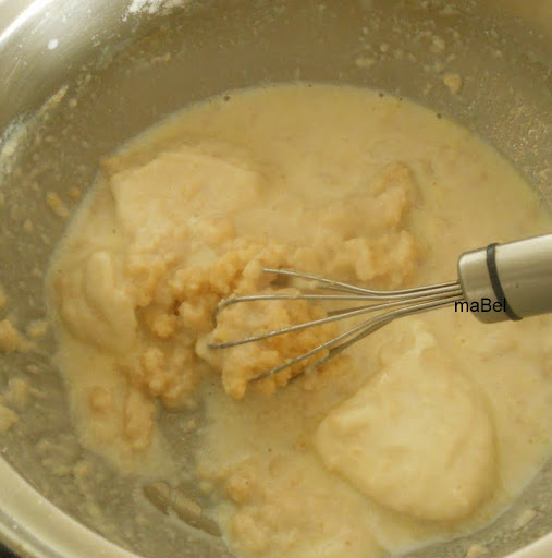 En este momento agregar 50 gr de queso crema de oveja, o Torta del Casar y 50 gr de leche y seguir mezclando hasta que se forme una crema